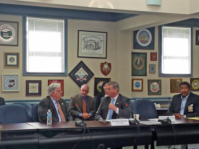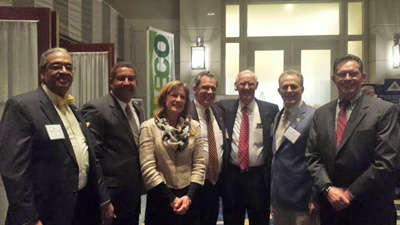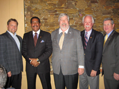(From left to right) Maryland Governor Larry Hogan, Maryland Secretary of Budget and Management David R. Brinkley, Mayor of Aberdeen Maryland and Maryland Municipal League Legislative Committee Chairman Michael Bennett, Councilman Stewart Cumbo Maryland Municipal League Board of Directors and Representing Southern Maryland Municipal Association as the District Vice President , and Director of Intergovernmental Affairs from the Governor’s Office Geannie Haddaway/Riccio, attending the Maryland Municipal League Legislative Committee Meeting April 2015.