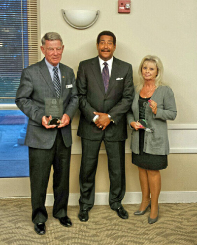 Councilman Stewart Cumbo, President of the Southern Maryland Municipal Association - SMMA (center) presents Awards to Mayor Roy Hale of La Plata (left) who served as the SMMA District 4 Vice President and Sharon Humm, Clerk, Town of Chesapeake Beach, who served as the SMMA Secretary, for their dedicated and outstanding service as SMMA Officers 2013 - 2014. The awards were presented at the SMMA Chapter Meeting, hosted at the La Plata Town Hall.