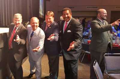 Maryland Municipal League 2015 Convention, Ocean City, Maryland. Attending the Red, White and Blue Banquet: Michael Bennett, Mayor Aberdeen; Scott Hancock, Executive Director MML; Carl Anderton, Delegate Maryland General Assembly; Stewart Cumbo, Councilman, Town of Chesapeake Beach; Bunky Luffman, Councilman Delmar, Maryland.