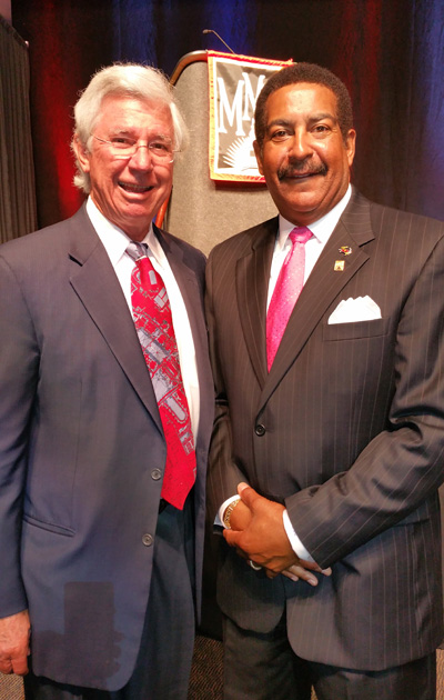 Councilman Stewart Cumbo (former MML President) with Maryland Lt. Governor Boyd Rutherford, attending the Red, White and Blue Banquet at the Maryland Municipal League Convention, Ocean City, Maryland.