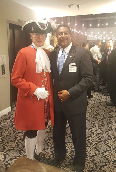 Council Stewart Cumbo with the Annapolis City Crier, following the Opening General Session of the 2017 Maryland General Assembly while attending the Maryland Municipal League Legislative Reception