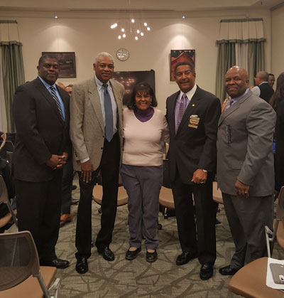 Councilman Stewart Cumbo with local members of the Tri-County community, attending the Southern Maryland Minority Chamber of Commerce. (From left to right) Maynard Smith, Small Business Consult – MGM Resorts International; Michael Moore, former Calvert County Commissioner; Joyce Freeland, NAACP Past President – Calvert County Branch; Stewart Cumbo, Councilman – Town of Chesapeake Beach; Guy Black, Blackout Investigations and Security Services, Inc.