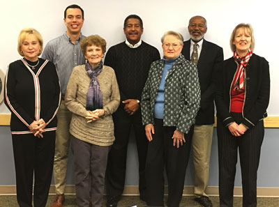 2017 Calvert Library Board of Library Trustees. Left to Right: Delores Brown, Martha Grahame, Carolyn McHugh, , Stewart Cumbo, Jeffrey Lewis, Catherine Grasso, Karen Eggert.