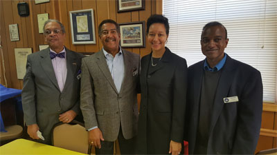 NAACP Calvert County Branch Summit at the American Legion Gray Ray Post #220. Key Note Speaker Dr. Stefanie Carter discusses Hospice Care. (from left to right): Malcolm Funn, First V.P. NAACP Calvert County Branch; Councilman Stewart Cumbo, Second V.P. NAACP Calvert County Branch; Dr. Stefanie Carter, Calvert Hospice; Michael Kent, President, NAACP Calvert County Branch.