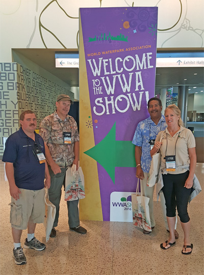 2016 World Water Park Association Symposium and Trade Show, New Orleans. (From Left to Right) Filo Blake - Water Park Maintenance Technician, Jay Berry – Town Public Works Administrator, Councilman Stewart Cumbo - Chair Water Park Advisory Committee, and Marilyn Van Wagner - Water Park Manager.