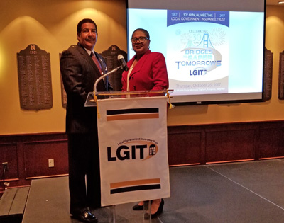 Attending the 2017 Local Government Insurance Trust (LGIT) 30th Annual Conference at the Navy-Marine Corps Memorial Stadium, Annapolis. Stewart Cumbo, LGIT Board of Trustee, and Debra M. Davis, Chair, LGIT Board of Trustees. (Debra M. Davis also serves as a County Commissioner, Charles County, MD.)