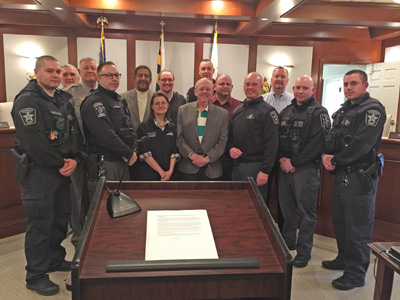 March 15, 2018: Chesapeake Beach Mayor and Town Council honoring and recognizing Calvert County Sheriff Mike Evans and Sheriff Department Deputies assigned to the Town of Chesapeake Beach.