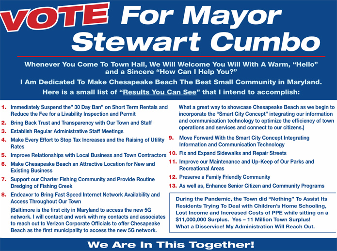Running for Mayor of Chesapeake Beach, Maryland, Election Day November 3, 2020.